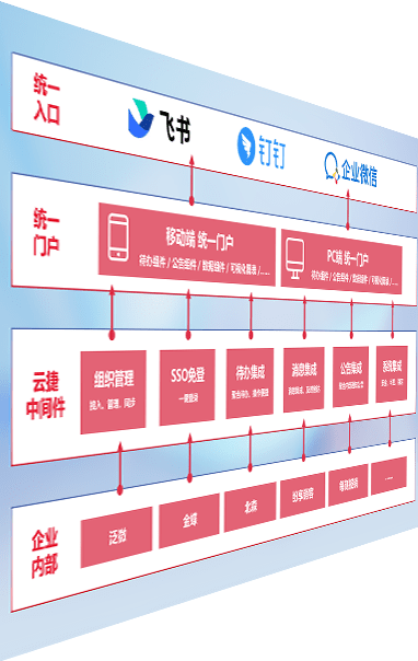 对协作平台提供支持服务,,支持企业应用与协作平台对接,,,包含组织同步、、、消息集成、、、、待办集成等。。支持目前主流的协作平台:钉钉、、、、企微和飞书。。。